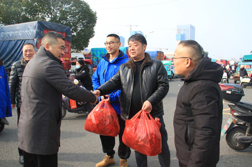 歲寒送溫暖,祝福賀新年。2月8日,汽運(yùn)集團(tuán)黨委委員、通農(nóng)物流黨總支副書記、總經(jīng)理孟宏帶領(lǐng)通農(nóng)物流領(lǐng)導(dǎo)班子成員深入交易區(qū)一線開展春節(jié)前走訪慰問活動(dòng)。