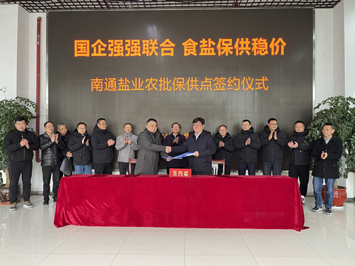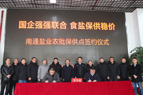3月6日上午,南通鹽業(yè)通農(nóng)物流保供點(diǎn)簽約儀式在通農(nóng)物流展銷樓一樓舉行,江蘇省鹽業(yè)集團(tuán)南通有限公司與南通通農(nóng)農(nóng)副產(chǎn)品配送有限公司正式簽署食鹽配送協(xié)議。崇川區(qū)委常委、崇川經(jīng)濟(jì)開發(fā)區(qū)黨工委書記閆靜翔、崇川區(qū)市場監(jiān)督管理局崇川經(jīng)濟(jì)開發(fā)區(qū)分局黨支部書記、局長周兵,江蘇省鹽業(yè)集團(tuán)南通鹽業(yè)有限公司黨委書記、董事長、總經(jīng)理許文軍,南通汽運(yùn)實(shí)業(yè)集團(tuán)有限公司黨委委員、南通農(nóng)副產(chǎn)品物流有限公司總經(jīng)理孟宏等相關(guān)領(lǐng)導(dǎo)共同出席簽約儀式,并參觀了南通鹽業(yè)通農(nóng)物流保供點(diǎn)現(xiàn)場。