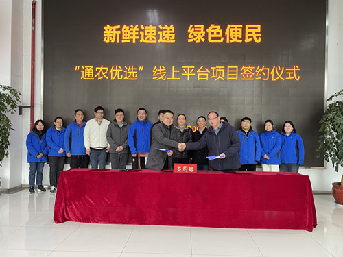 3月6日上午,“通農(nóng)優(yōu)選”線上平臺與南通甜璽辰貿(mào)易發(fā)展有限公司正式簽約。通農(nóng)物流黨總支副書記、總經(jīng)理孟宏與南通甜璽辰貿(mào)易發(fā)展有限公司代表單建峰簽署“團購協(xié)議書”,就南通市內(nèi)社區(qū)團購達成合作。