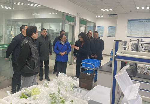調(diào)研組一行首先來到通農(nóng)物流檢驗檢測中心,通過查看農(nóng)產(chǎn)品檢驗檢測過程、食品安全快速檢測管理系統(tǒng)等,詳細了解農(nóng)產(chǎn)品質(zhì)量安全情況。聽取匯報后,調(diào)研組前往蔬菜交易區(qū)查看了農(nóng)產(chǎn)品進貨查驗登記等臺賬,并與場內(nèi)經(jīng)營戶進行了深入交流。