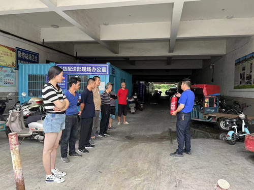 為應(yīng)對(duì)生產(chǎn)經(jīng)營(yíng)中的突發(fā)事件及火災(zāi)事故,進(jìn)一步增強(qiáng)商戶及小工的安全意識(shí),了解并學(xué)會(huì)使用消防器材,提高自我保護(hù)能力和遇險(xiǎn)防范技能。9月10日下午,干貨配送區(qū)組織轄區(qū)內(nèi)的部分商戶、小工開展了消防滅火器使用培訓(xùn)。