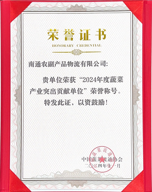 11月22日-23日,在中國(guó)蔬菜流通協(xié)會(huì)、中國(guó)農(nóng)產(chǎn)品市場(chǎng)協(xié)會(huì)主辦的第十三屆中國(guó)·四川(彭州)蔬菜博覽會(huì)上,南通農(nóng)副產(chǎn)品物流有限公司喜獲“2024年度蔬菜產(chǎn)業(yè)突出貢獻(xiàn)單位”榮譽(yù)稱(chēng)號(hào)。