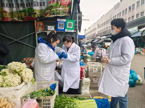 3 月 15 日當(dāng)天,食安部工作人員在交易區(qū)忙碌穿梭,向過往市民和經(jīng)營戶發(fā)放精心制作的食品安全宣傳單頁。單頁內(nèi)容詳實(shí),涵蓋如何辨別食品真?zhèn)巍⑹称钒踩对V渠道等實(shí)用信息。工作人員還在現(xiàn)場(chǎng)為市民細(xì)致講解食品安全知識(shí),耐心解答市民的各類疑問,累計(jì)發(fā)放宣傳單頁400余份。同時(shí),工作人員深入經(jīng)營戶攤位,開展現(xiàn)場(chǎng)快速檢測(cè)工作,重點(diǎn)檢測(cè)蔬菜、水果的農(nóng)藥殘留等項(xiàng)目,當(dāng)天檢測(cè)樣品均符合食品安全標(biāo)準(zhǔn)。